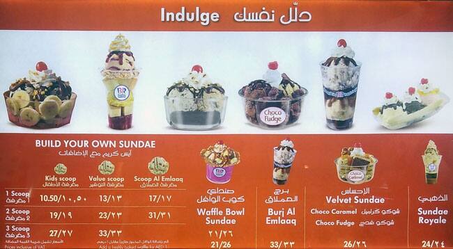 Baskin Robbins Ice Cream Prices List Uae
