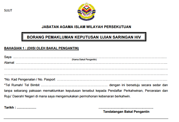Borang Ujian Saringan Hiv Pra Perkahwinan Sabah