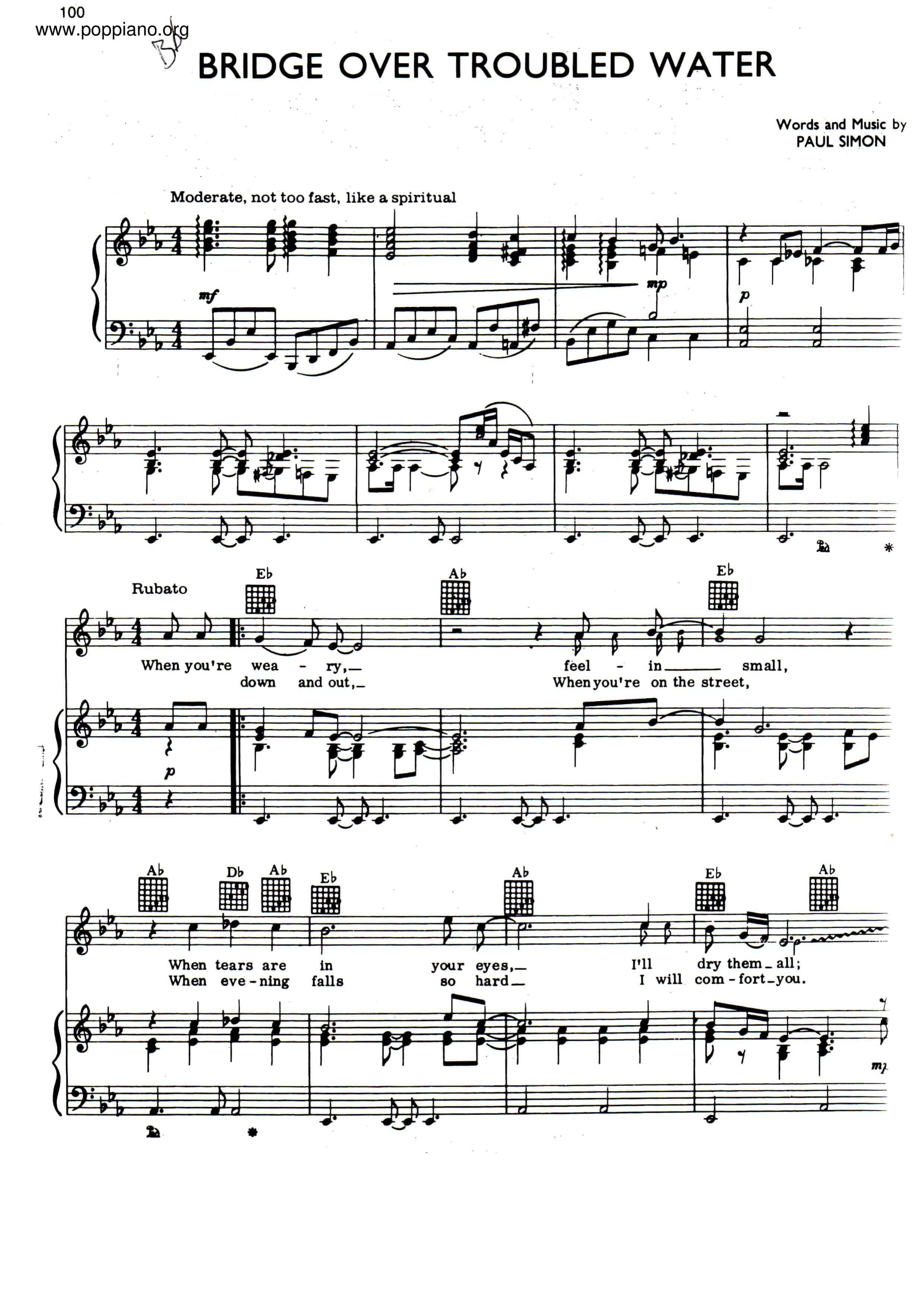 Bridge Over Troubled Water Sheet Music Simon And Garfunkel Sheetmusic Free Com