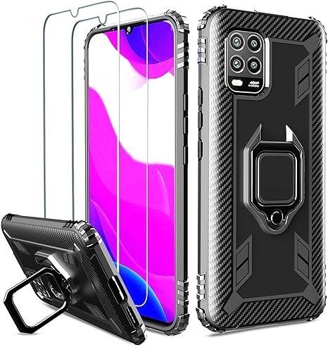 Milomdoi Case With 2 Pack Cover For Xiaomi Mi 10 Lite 5g Case With Hd Tempered Glass Screen Protector 360 Case Ring Holder Kickstand Tpu Silicone Shockproof Cover For Xiaomi Mi 10