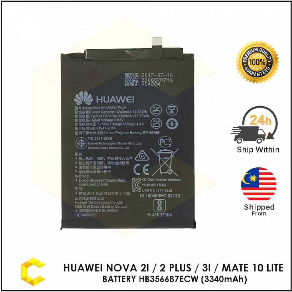 Huawei Nova 2i 2 Plus 3i 4e Mate 10 Lite Honor 7x Hb356687ecw 3340mah Battery Replacement Shopee Singapore