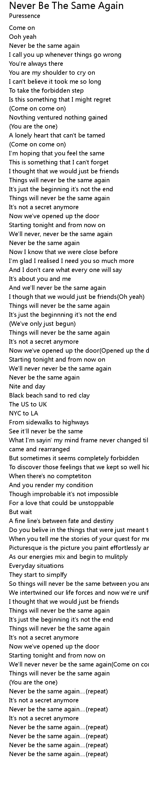 Never Be The Same Again Lyrics Follow Lyrics