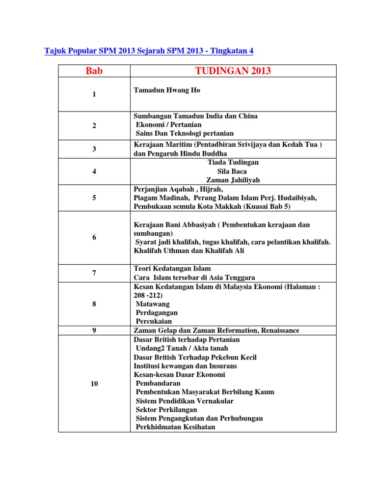 Tajuk Popular Spm 2013 Sejarah Spm 2013