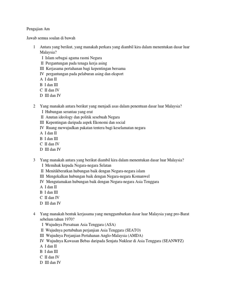 Bahagian A 15 Markah Jawab Semua Soalan Sahc Edu U Portal Pengajian Am Koleksi A A C Pergerakan Negara Negara Berkecuali D Pertubuhan Negara Negara Asia Tenggara 8 Penglibatan Pdf Document