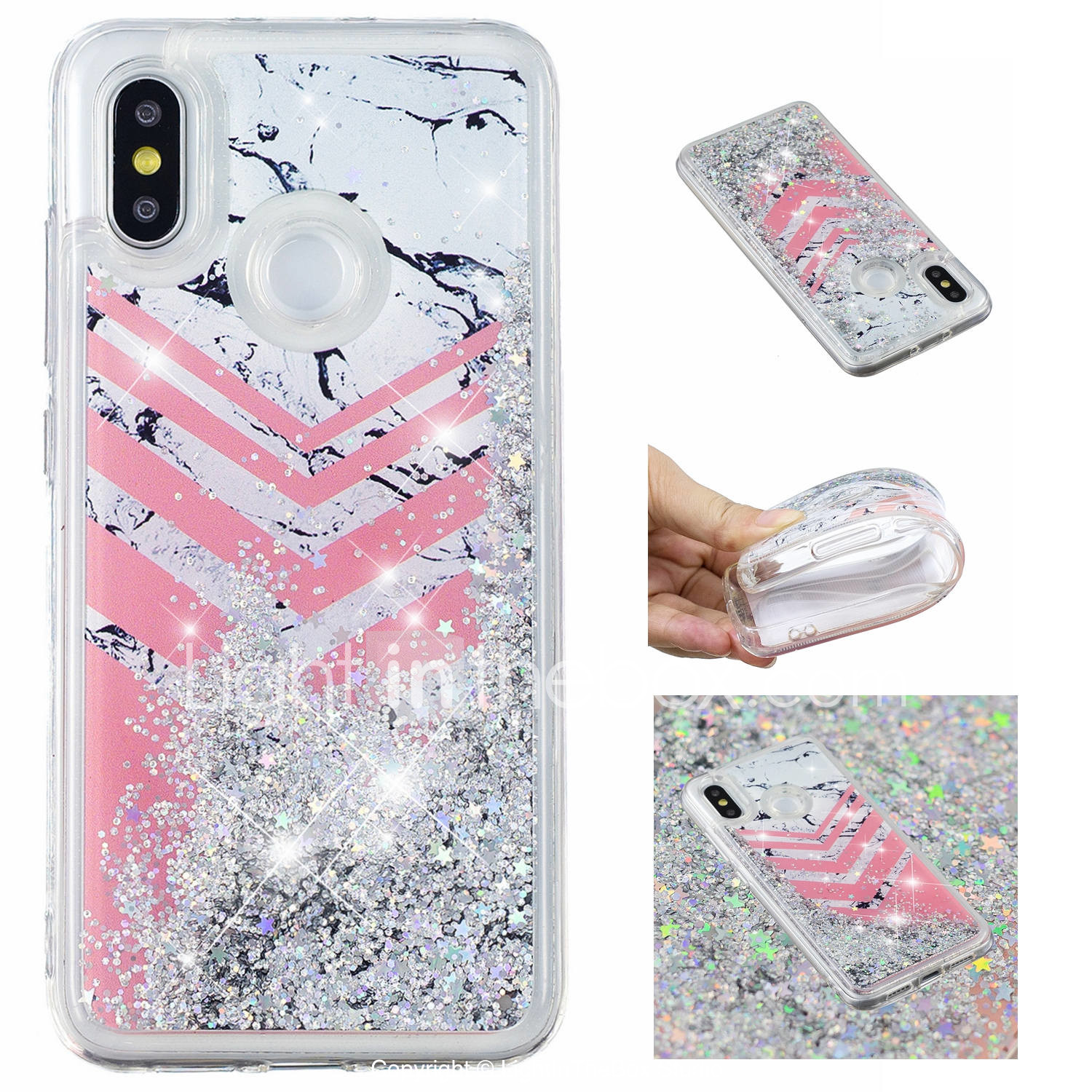 Case For Xiaomi Redmi Note 5 Pro Mi 8 Flowing Liquid Pattern Glitter Shine Back Cover