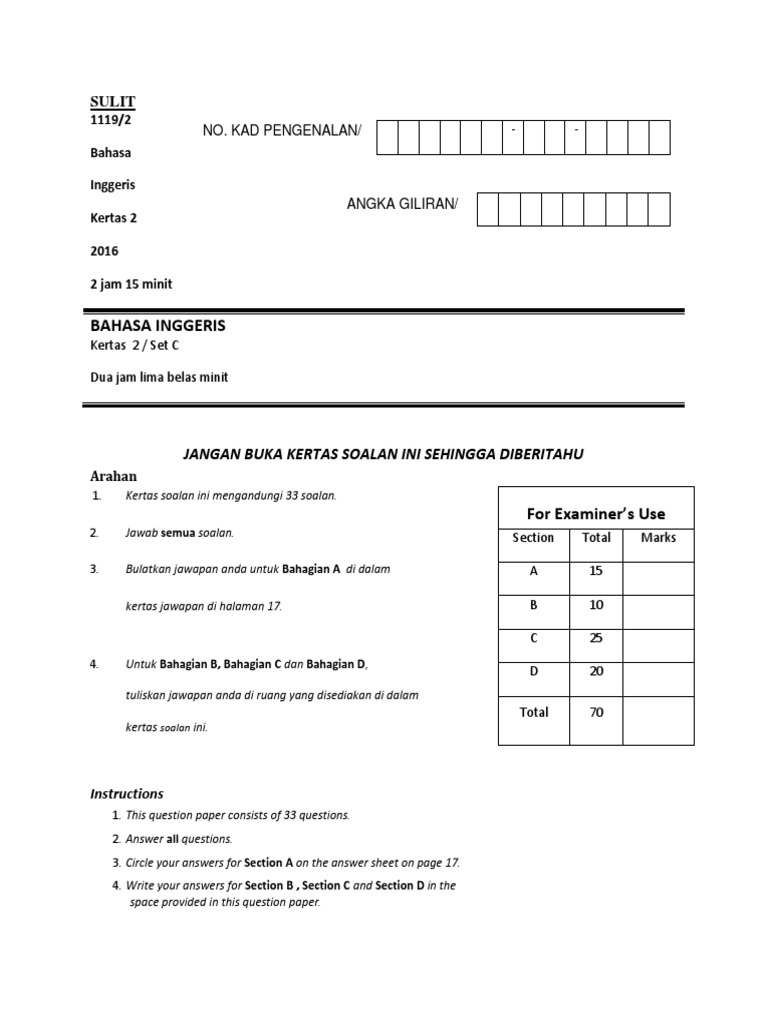 Soalan Percubaan Spm Bahasa Inggeris Sarawak 2016 Gurubesar My