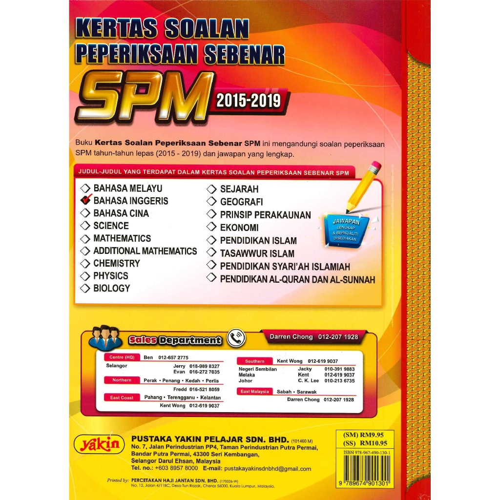 Yakin Kertas Soalan Peperiksaan Sebenar Spm 2015 2019 Bahasa Ingge Topbooks Plt