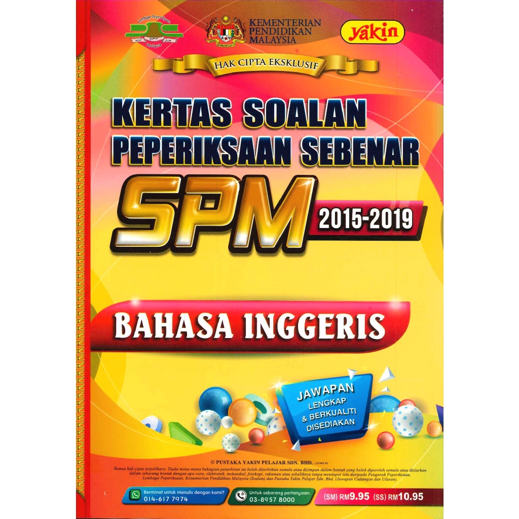 Kertas Soalan Peperiksaan Sebenar Spm Bahasa Inggeris 2015 2019 Shopee Singapore