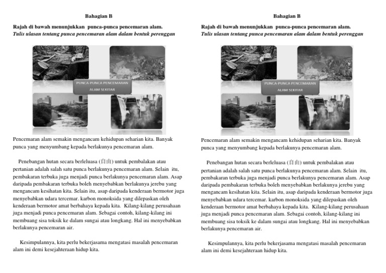 Karangan Fakta Punca Punca Berlakunya Pencemaran Alam Docx